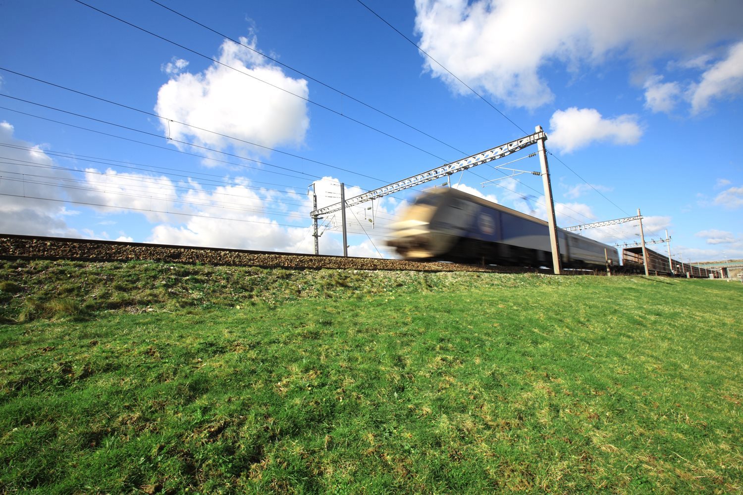 Die Züge von LeShuttle können mit einer Geschwindigkeit von 140 km/h durch den Kanaltunnel fahren.