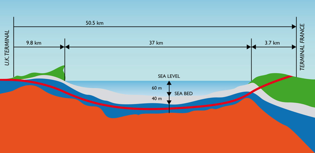 An seiner tiefsten Stelle liegt der Kanaltunnel 75 Meter unter dem Meeresspiegel.